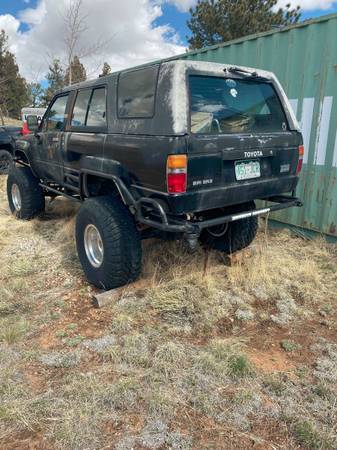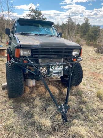 1987 solid axle swap 4Runner. Hydro Steering, RockStomper trac bar and drive shaft loop. MFI skid plates tranny and tcase.Warn x8000i winch w/remote. 5.29 gears, Detroit true track in front, Detroit Locker in rear. Longfield (RCV) Birfields 4340 Chromoly Lifetime guarantee. Alcan springs RANCHO 9000 shocks, Smitty Built interior cage, Fits 37 or 39 inch tires..Engine is from my 1998 Grand Cherokee ZJ. It is the 5.9 (360ci) with 77,000 miles. Auto Transmission is from same ZJ have all computers for engine and Transmission, Tcase is NP- 241 from Ramcharger. Only a little rust in rear rocker panel but has been stopped with SolvOrust, not hacked up, I have some extra window glass for several of the topper windows. The BAD. It has oxidized from being outside all these years (6). The engine, radiator, transmission are all installed but nothing has been wired.