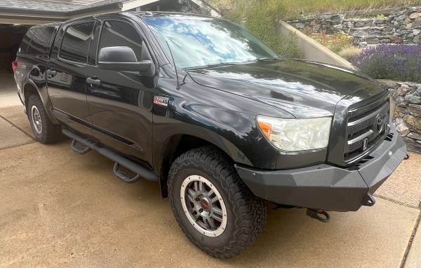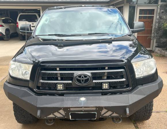 Magnusen super charger, 46 gallon fuel tank, CrewMax 5.7L V8, 4WD, tinted windows, topper, cat back exhaust, cat converter protection plates, Line-X bed liner, DV8 bumpers front and rear, Taco Tunes amp speakers and sub, air suspension (manual), swing out tool boxes (2), remote start, cruise control, A/C, power windows and locks, XM radio, towing package, LoJack, running boards. Original owner, Regular oil changes, new brake pads and rotors in June. 5.5' bed. Passes emissions tests. No mechanical issues at all.