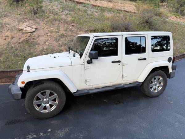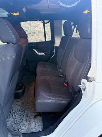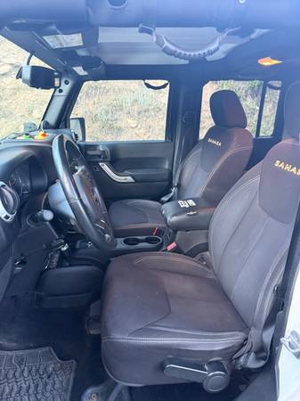One of a kind Jeep Unlimited Sahara with tough white truck bed liner paint. Black interior with heated front seats, removable top panels, remote start, blue tooth, and newer tires. Will throw in an...
