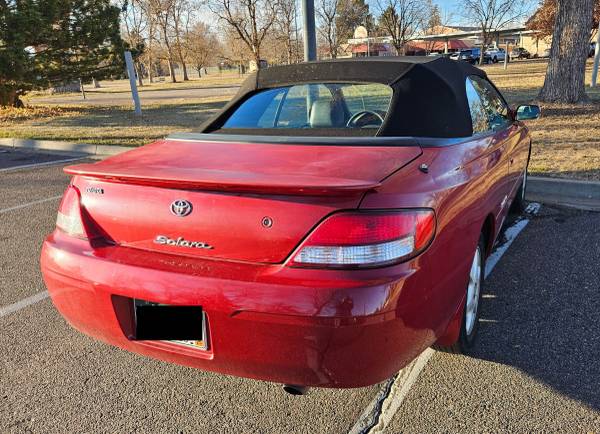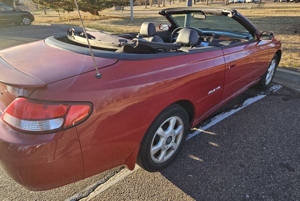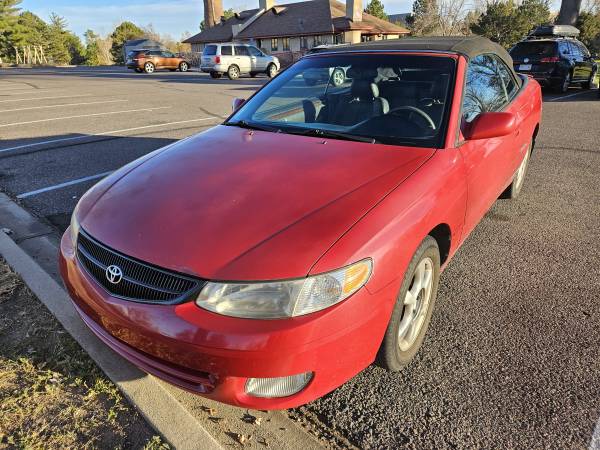 Beautiful red, sporty, great running and driving Toyota Solara convertible! Powered by the tried and true 3.0 liter Toyota V6. Great combination of power and gas mileage. Electric locks, windows and convertible top. Also cruise control.