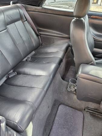 Black convertible top is in excellent condition. Body and paint are generally good although the paint could use a cut and buff. Black leather is in decent shape with a couple patches.