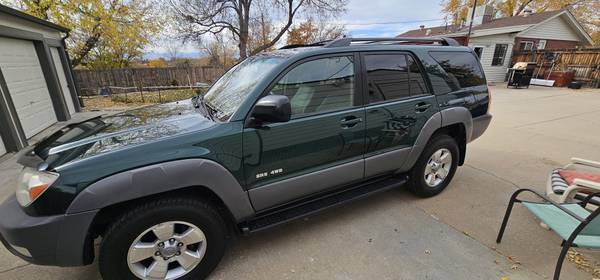 I'm the original owner of this 2003 Toyota 4Runner. My loss is your gain! I'm sell my beloved 4Runner. It was used to travel to places like Wyoming, Kansas, Nebraska Western Slope, and Southern Colorado for my business. Because I've retired, I've decided to sell and get something smaller.