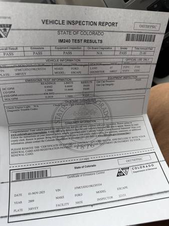 2009 ford escape 6cylinder AUTOMATIC front wheel drive cloth interior power locks & windows ac/heater 168xxx miles exemp clean colorado title in hand emissions passed cosmetic details normal wear starts right up shifts smooth looking to sell only thanks!