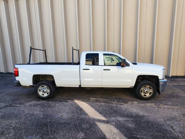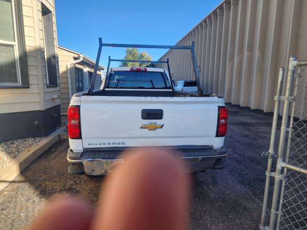 Used White Chevy Work Truck. Gas Engine. Fair Condition with a Salvage title. Does currently need work on tire balance or tie rods.