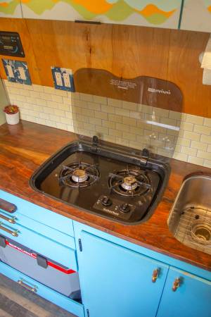 - Custom fold-out tables β includes a dinner table and removable camp table