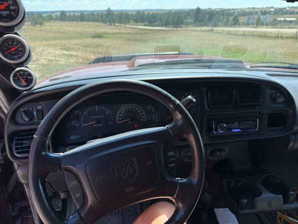 2001 Dodge Ram 2500 SLT Quad Cab w/5.9 I6 Diesel. Original owner. Have maintenance and service records. Many upgrades to include HD aftermarket transmission, 5" exhaust, new Bilstein shocks and steering stabilizer, custom wheels w/ new tires, 2 new batteries, air bag suspension in rear, new dash, aftermarket stereo and speakers, aftermarket hood and paint, fender flares, grill guard, step side bars, brake controller, camper tie downs, Champion frame mounted gooseneck/5th wheel hitch, heavy duty receiver hitch, extra set of tires and wheels, 3 spares on wheels.