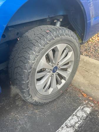 GIVE BEST OFFER - F-150 Stock 20”x8.5” Silver Wheels with Hankook 275/55R20 Tires, 6x135mm Bolt Pattern - please reach out with any questions. The rear tires (pictures 1 & 2) are in relatively good condition while the front tires (pictures 3 & 4) have lower tread. The wheels alone are worth this, so wanted to include the tires if wanted. Let me know if interested need gone!