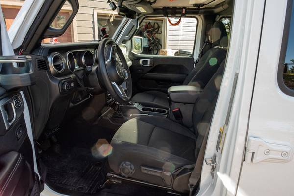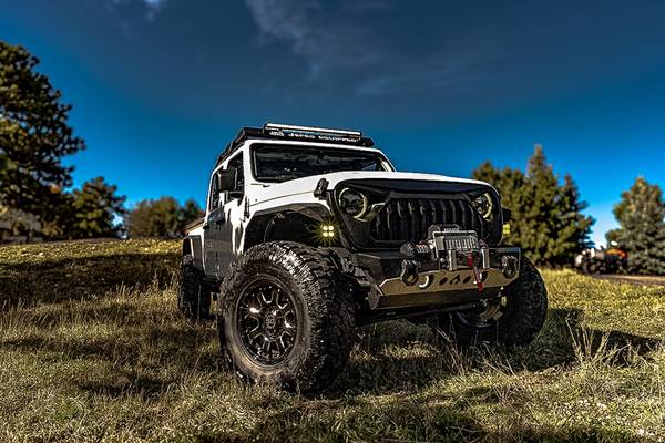 Gladiator Overland, 3.6L, 4x4 Command Trac lifted 3.5" with JKS Jspec lift system and upgraded Fox shocks and rockbars (Rubicon version). Remote start, ZAutomotive chip, roof rack, light bar, fog lights, 9,500 lbs winch, Artec Industries front winch bumper, Black Rhino wheels, 37" Patagonia M/T 02 tires with little to no wear, full LED conversion, Oracle rear lights, aftermarket fender flares and inner fenders, front and rear rubber liners (Husky) aftermarket grill adapted to winch, original white grill comes with the car.
