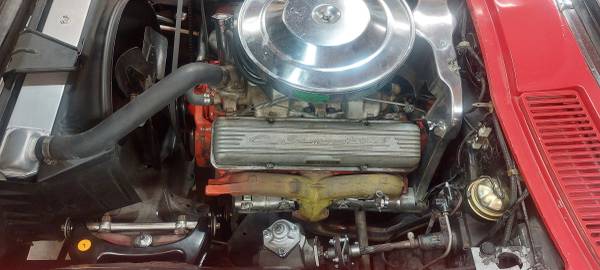 Numbers matching L76 327-365hp, solid lifters, original 0-2818 Holley carb, air cleaner and ignition shielding.202 heads.