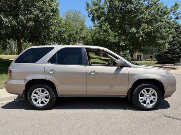 PRICE REDUCED! 2004 Acura MDX Touring Package in good shape with 189,000 miles. 2 owners and 3 keys. Alloy wheels, Fog lights, 3rd row seating, Heated leather seats, Sunroof, AC, 4-wheel drive when activated, Rear hitch, Weathertech & original floor mats, roof racks, Navigation system, Bose sound system, DVD, CD/MP3 Multi Disk. Battery is new. Continental tires are in very good shape. Steers and handles nicely, comfortable ride. Recent Oil and filter change. Paint has some scratches, scuffs. The windshield has a few cracks. AC clutch does not engage due to bad electromagnet. Check engine light code OBD2 indicates evap leak. $3900 cash.