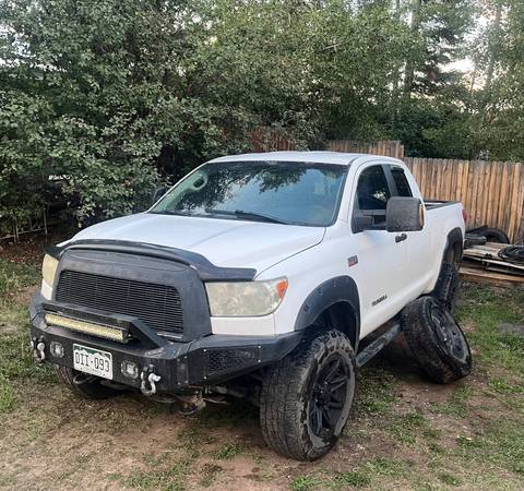 2007 Tundra after market blue tooth stereo satellite ready, android or apple car play with navigation and back up camera. Light bar upgraded bumper and rear suspension air bags and trailer break. 5.7L 187,000 miles. Extra set of snow tires. Very well taken