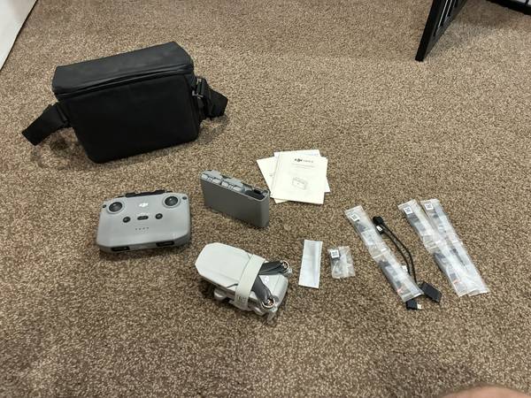DJI Mini 2 flies great, no damage to any parts. includes "fly more" kit which has replacement blades and other parts. includes 3 batteries and carrying case.