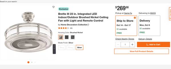 I have a brand new in the box Brette III 23 in. Integrated LED Indoor/Outdoor Brushed Nickel Ceiling Fan with Light and Remote Control I bought two to put in my residence but only used one it works...