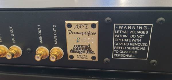Conrad Johnson Art Series 2 In the original packing. $16.000 retail, amazing preamp, ( Newer Electro Harmonix very good tubes), using ten 6922 tube. just over 100 hours tube burnt in. Come to hear the demonstration and arrange the price.