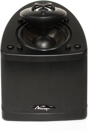 The Mirage NANOSATS are a high quality speaker system perfect for use in any room. The Mirage NANOSAT uses exclusive Omnipolar technology, meaning that it has an "omniguide", shaped in a saucer, and mounted above its drivers that allow it to disperse sound evenly in a 360-degree pattern. This technology allows the Mirage speaker to radiate sound, creating a richer listening experience than that given by a traditional direct-firing center speaker. With its flexibility, the speaker can now be mounted practically anywhere that is convenient for the user. The speaker has a sensitivity level of 91dB and a frequency response of 100 Hz - 20 kHz.