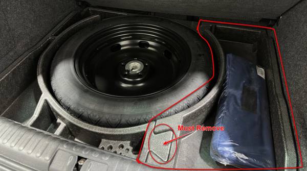 Please see PIC for where this fits INTO EXISTING STORAGE SPACE. It replaces some existing FOAM in spare tire storage space.