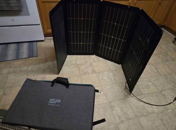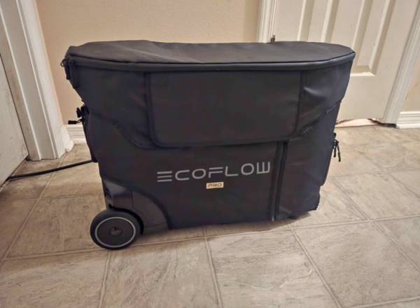 Ecoflow delta pro with protector cover on it also comes with an extra cover for another unit or extra battery comes with (2) 220 watt solar panels and ecoflow wagon main unit still has 3 years and 3 months of warranty remaining used only couple of times