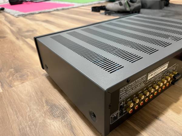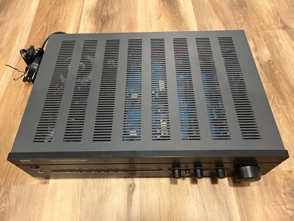 Clean example of a NAD C 325BEE Integrated Amplifier. This comes from a clean, non-smoking home and hasn't been abused. See pictures for general condition. Small deformation in top vent area due to a heavier item being placed on top. See pictures. No remote included. Comes as shown.