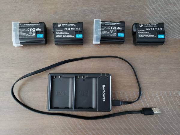 Selling a four pack of camera batteries and charger as a set. EN-EL15a/15b
