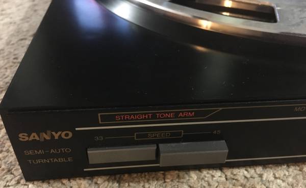 Sanyo TP686a Vintage Component Stereo Turntable. Selling As/Is. It has a component clip that I was thinking about replacing with a standard 12v DC barrel plug, but after it sitting for years I just want it out of here. There is no needle, three of the feet are good.