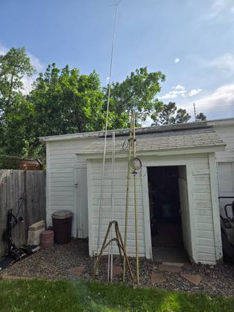 This is a used omnidirectional CB Radio 5/8 wave antenna with mast by Archer (Radio Shack brand), tripod mount, & some guy-wire. Total height nearly 45' tall. (Last image in photos is not this actual antenna - just an example of it assembled)