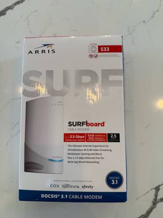 ARRIS - SURFboard S33 32 x 8 DOCSIS 3.1 Multi-Gig Cable Modem with 2.5 Gbps Ethernet Port