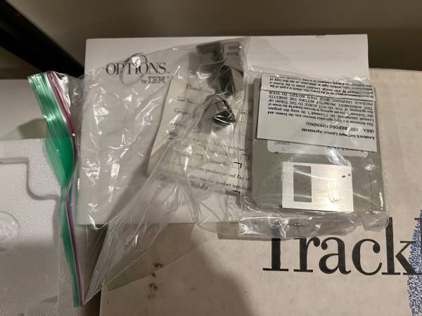 Trackball is missing, but if i recall last time i used it I used my finger to confirm the trackball WOULD work if you had the ball. I was told there is a reddit that deals with finding out what trackball replacement would fit if you don't mind non-oem.