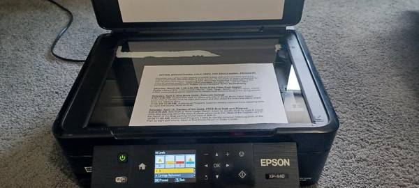 Epson Expression Home XP-440 with Wi-Fi connectivity. Scans, and prints. Works Fine, Wife and I upgraded to newer models. Needs ink -Epson 288 cartridges. Call to see it Hank , please no texts....