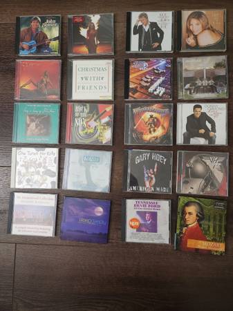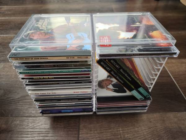 music CD John Denver Celine Dion Barbra streisand Rod Stewart etc. 20 pcs clear plastic rack included $10