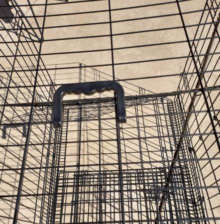 DOG CRATE 36'' Dog Crate secure environment for your dog/animal. Side door and front door, BlacK Steel and Plastic handle about 18 lbs Folded 36'' L x 24'' W x 22’ H