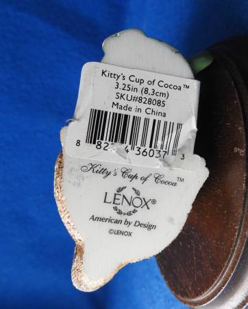 Lenox Figurine Kitty's Cup of Cocoa #828085 Nice Used Condition I'm located near the corner of Parker Road and Quincy , and Smoky Hill Road I do text you can reach me by phone 720 849 five three...