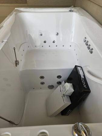 LIQUIDATING this BRAND NEW PERFECT *Top of the Line Model*. Walk - In Bathtub. ANZZI Model# AMZ3660RWD Walk In Tub - 36" x 60" Right Drain, Fully Loaded. Hot Tub/Bathtub with Air Whirlpool Massage Jets, Quick Fill, 6 Setting Handheld Shower, Aromatherapy, Bath Pillow, LED Lights.