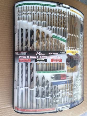 I have for sale one new 74 Piece Wall Mount POWER DRILL ACCESSORY SET from Masterip. PRICE Only $49.00 FIRM-CASH ONLY. If you are interested or for more information, please call. Thanks for looking!