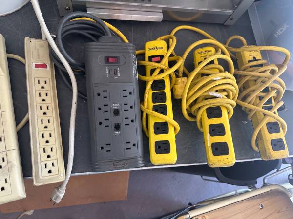 2 with 15’ cords, heavy duty metal casing, $20/each Others with 6’ and 3’. $5.00/ea Take power where you want it.