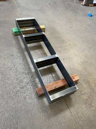 One custom-built 3-tier shelving unit with wood veneer shelves and steel support frame.