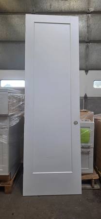 Modern solid core interior door with a single recessed panel design, finished in white. Clean and versatile style that fits both contemporary and traditional interiors. Door is in great reused condition with minimal wear from removal. Ideal for bedrooms, offices, or hallways.