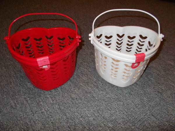 BRAND-NEW: 4 Heart-Shaped Baskets with Handles (All 4 for $3.00) *** Great for Valentine's Day or any day of the year!!! Colors: - 2 White - 2 Red Measurements: 7” Across & 4 ½” Tall Condition:...