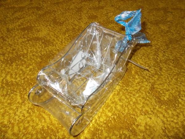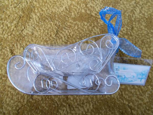 Christmas – Metal Sleigh (Brand-New) Color: Silver Material: Metal Measurements: - 7 ½ inches Long - 4 ¼ inches Tall - 3 ½ inches Wide *** This would be cute to put a small Santa Claus stuffed toy...