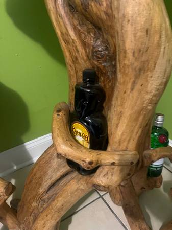 Custom one of a kind hardwood bar table with bottle inserts and 2 stools. Very unique design with a beautiful live edge and grain. I’ve had this table for a few years now, I traded a running car for it back in 2019. Asking $2000 ObO might consider trades but I am moving so no large items please.