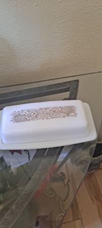 5) Pyrex vintage butter dish 7" Woodland opal gold dish$25.