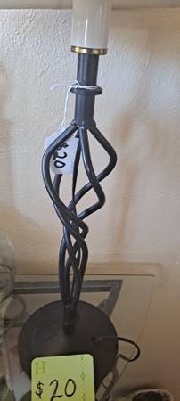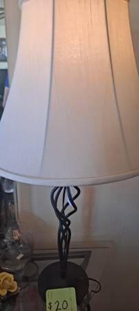6) bronze color metal lamp off white lamp shade23""H $20.