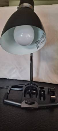 2) black metal desk lamp adjustable heights goose neck lamp $ 20. 18"H ×11" W made sturdy like new condition.