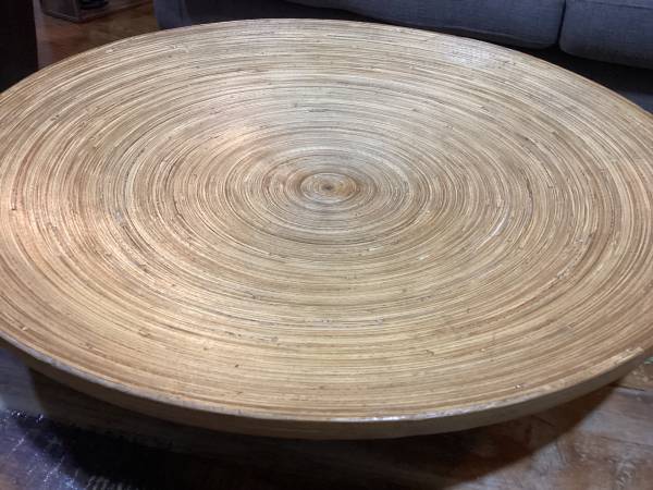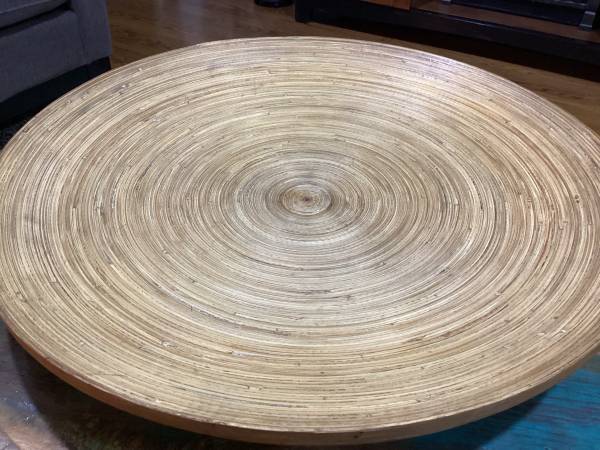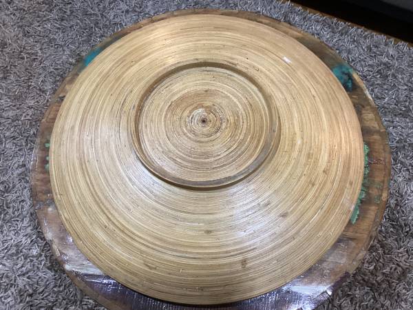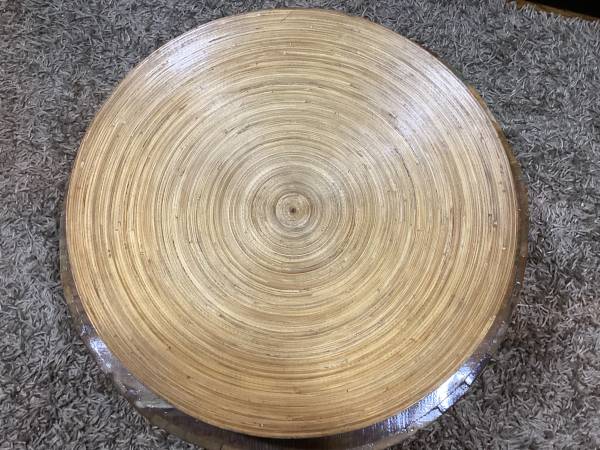 I am selling an amazing and very large Mid Century Modern style 24” diameter SPUN BAMBOO centerpiece platter or bowl. I used it with balls and pine cones. It is in beautiful condition, with no splits or cracks.