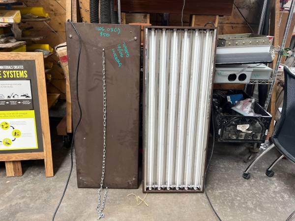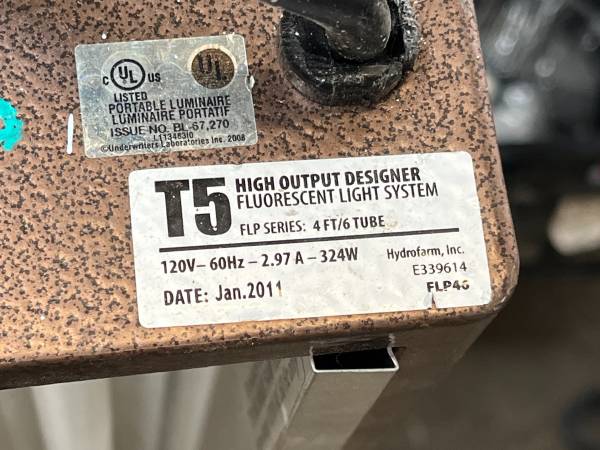 This is a high-output T5 fluorescent grow light system made by Hydrofarm, a well-known manufacturer of horticultural lighting. It uses six 4-foot T5 HO bulbs and provides strong, even light output suitable for seed starting, vegetative growth, or general indoor plant lighting.