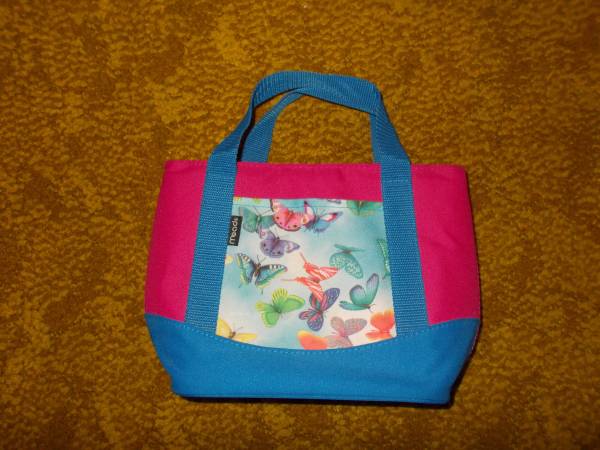 Insulated Lunch Bag – REDUCED PRICE: $3.00 *** Butterfly Lunch Bag - Pink & Blue - Outside Pocket - Zippered Top - Insulated Brand: “Mead” Measurements: - 10 ½ inches in Length (Across) - 7 ½...