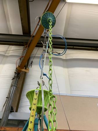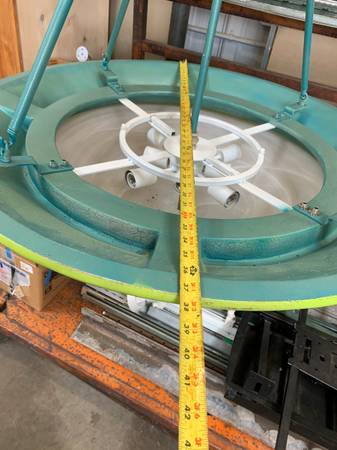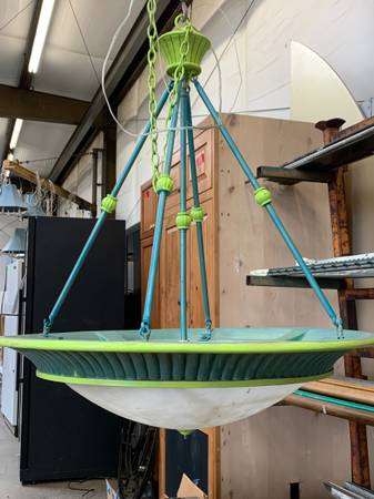38" diameter X 33" drop but extendable by chain (see pictures)
