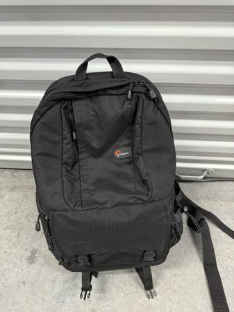 Black LowePro Camera Backpack. Check the pics and contact Beverly to purchase.