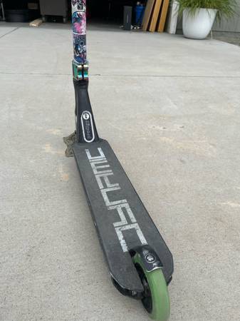 Very high in scooter for any age I’ve had the scooter for a couple years and haven’t found time to write it recently so I’m deciding to sell it. The scooter is dialed and in great shape. It has an upgraded $50 clamp on it and different groups. Besides that it is stock. I am able to takeoff the stickers on the handlebars if you would like. This scooter new is around 165$ to 250$ the scooter has been taken perfect care of with the only visible wear being on the break