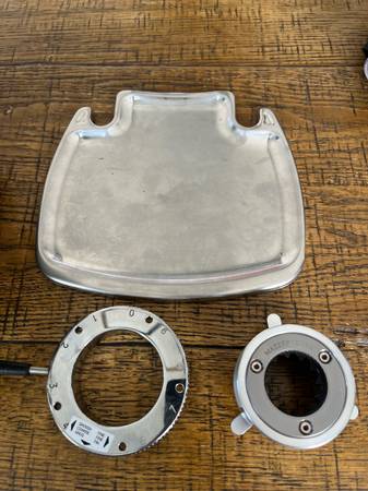 Includes hopper, stainless tray and finger guard (removed for my use)