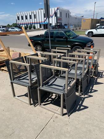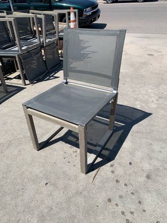 Durable outdoor chairs with a breathable mesh sling seat and backrest stretched over a powder-coated metal frame. Neutral charcoal and gray tones suit most outdoor settings. Lightweight yet sturdy design allows for easy stacking and storage. Great for patios, restaurants, cafes, or backyard use.